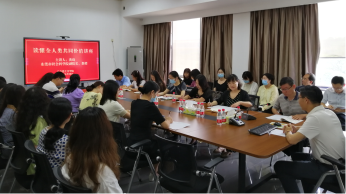 为深入学习宣传贯彻党的二十大精神,学深悟透习近平总书记关于全人类共同价值的重要论述精神,马克思主义学院于6月16日下午邀请东莞市社会科学院副院长黄琦教授在立德楼B507会议室开展题为《读懂全人类共同价值》主题讲座。马克思主义学院全体专任教师参加专题讲座。学校党委副书记、纪委书记蔡东宝同志莅临指导。会议由我校马克思主义学院院长石文斌教授主持。