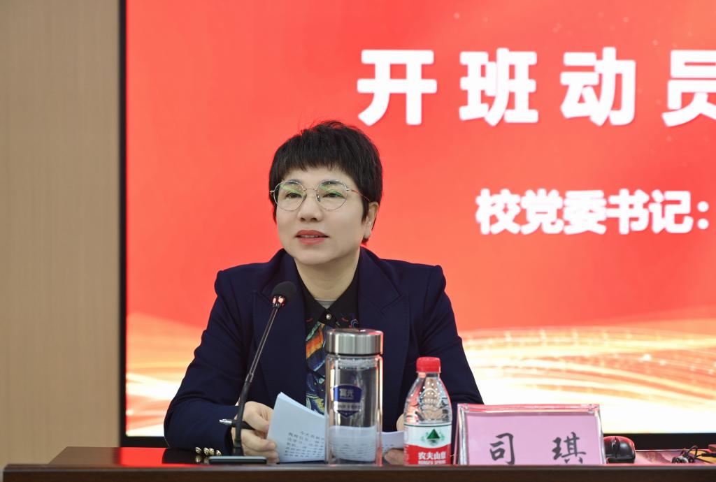 司琪书记在上午举行的开班动员讲话中强调,在第二轮“双高”和新年度新学期开局起步的重要阶段,有必要举办一次专题研讨班,从中层干部抓起,深入学习贯彻习近平总书记系列重要讲话精神,更好地以学铸魂、以学增智、以学正风、以学促干,扎实推进学校各方面工作再上新台阶。一是要坚持凝心铸魂,从习近平总书记对广东系列重要讲话和重要指示精神中汲取奋进力量;二是要深化以学促干,锚定建双高、办本科推动学校提质升级、服务地方高质量发展;三是要躬身实践在前,以新气象新作为不断开创学校高质量发展新局面。司琪书记要求,全体中层以上干部要以这次学习研讨为契机,进一步理清工作思路、拿出硬招实招,共同把学校建成东莞特色、全国一流、国际有影响的高水平职业院校,服务好、支撑好区域高质量发展。