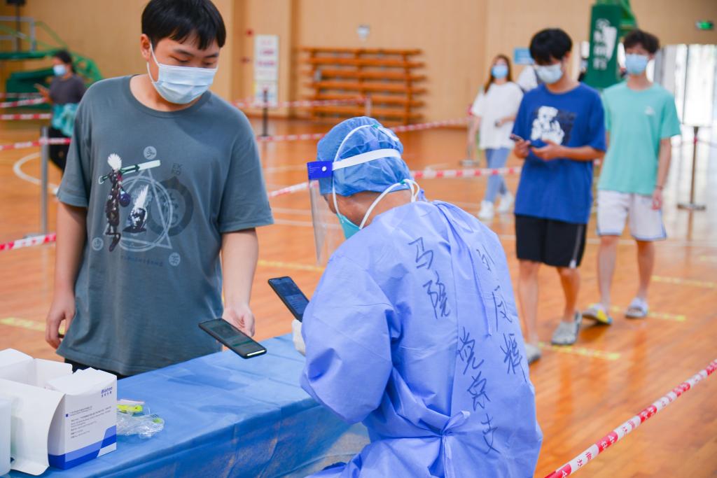 核酸检测从上午9点一直持续到12点30分,长达三个半小时。期间,三个党总支的教师党员志愿者严谨认真地为每一名参与检测的教师、学生、家属做好核酸检测服务工作。到脱下防护服的时候,一身汗水浸透“征袍”,防护面罩在脸上留下一道道勒痕。据统计,前来进行检测的师生达5600余人,通过大家的齐心努力,圆满地完成了本次核酸检测服务工作,进一步筑牢了学校疫情防控安全防线。